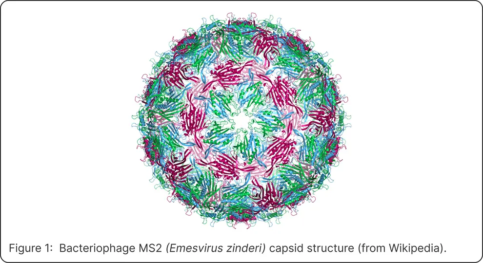 Varizymes' MS2 Phage is a bacteriophage with a single-stranded RNA genome of 3569 nucleotides protected from nuclease degradation by a capsid of 180 coat protein monomers. This virus is a Biosafety Level 1 organism and is not pathogenic to humans. These properties make MS2 Phage useful as a process control in nucleic acid-based amplification techniques like RT-PCR, RT-LAMP, and particularly those that involve viral RNA extraction.